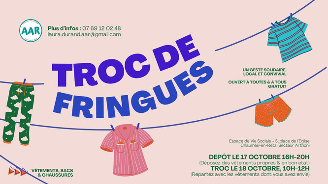 Le troc de fringues de Chaumes-en-Retz, organisé par l'association Arthon Animation Rurale, est de retour : un geste solidaire, local, écologique et convivial pour faire du tri dans son